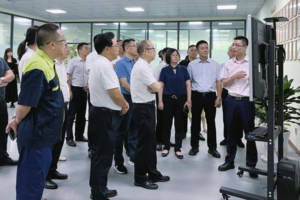 在周立明董事長的帶領下,調研組一行首先參觀了億森動力建設的工業園區智慧展廳項目,隨后參觀了億森動力產品展廳、實驗室、生產車間等,對我司自主研發的多款生態環境監測產品和應用場景給予高度評價。